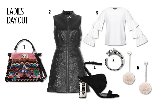 Kenakan zipper dress di luar atasan beraksen ruffles pada lengan. Lalu, sempurnakan performa Anda melalui aksesori bermaterial fur, seperti pada anting serta tas. Ready to hangout with the ladies!