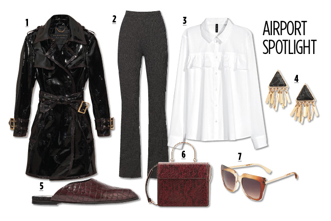Trench coat bahan patent leather ini sanggup mengangkat inner ladylike Anda. Untuk memberi kesan effortless, pilih slippers stylish nan nyaman, dan bersiaplah jadi pusat atensi saat berlenggang di bandara.