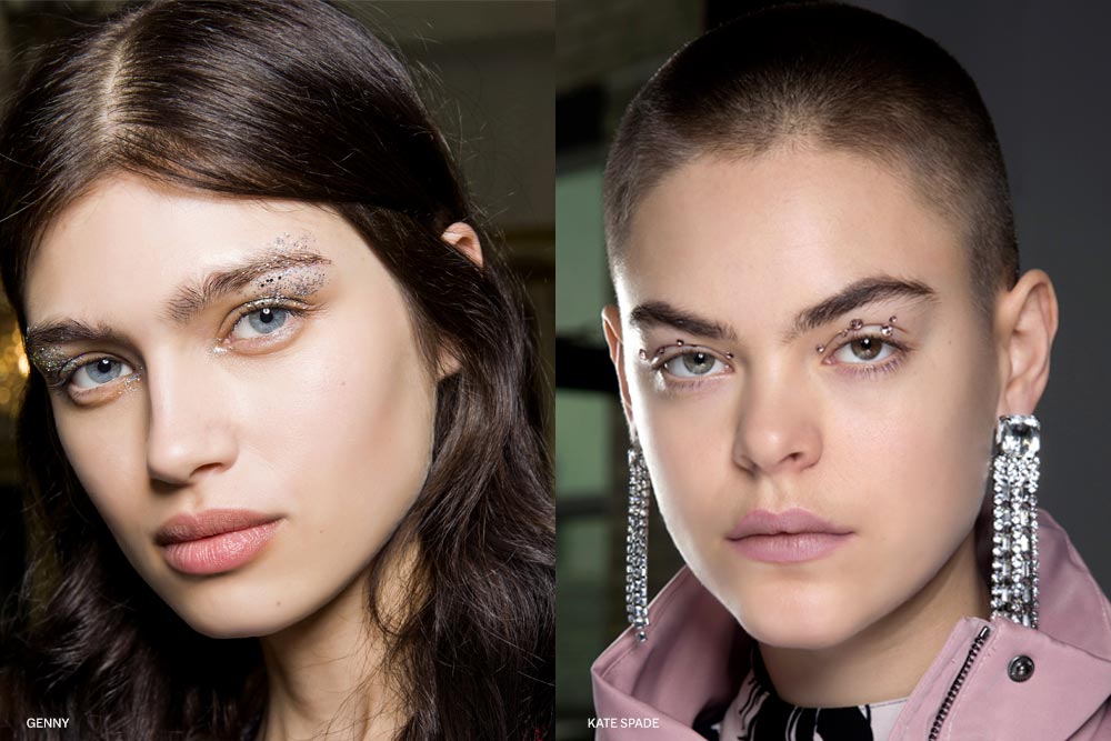 Makeup artist untuk fashion show Genny dan Kate Spade F/W 2018 menghadirkan tren sparkling eyes yang berbeda. Kali ini, aksen kilau di bagian mata model bukan datang dari eyeshadow metalik atau shimmer, melainkan taburan glitter dan manik yang ekstra stunning! Tertarik bereksperimen dengan tren ini? Kamu bisa menggunakannya saat menghadiri festival musik selanjutnya.