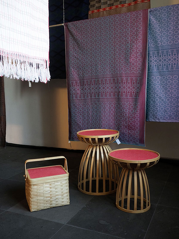 Mulai dari keranjang, meja, sampai kursi, sentuhan etnik pun melebur dengan desain kontemporer dari objek dekorasi yang apik. Tak berhenti sampai di situ, seluruh kreasi tenun tersebut juga punya cerita masing-masing yang merepresentasikan keindahan suku bangsa nusantara. Seperti Bangu Woven Basketball yang terinspirasi dari jamang sangsang, yaitu busana tradisional suku Baduy yang didominasi oleh warna hitam. Bahkan ada filosofi di balik warna hitam tersebut, lho! Ternyata, sumber inspirasi warna hitam tersebut berasal dari warna-warna alam di daerah pegunungan tempat suku Baduy tinggal.
