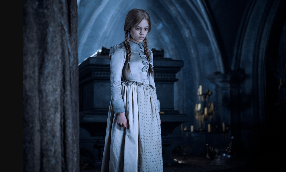 Ok, ya, Cosmo tahu secara teknis ini bukan gaya Wednesday. Di sini Jenna menjadi karakter sebagai hantu leluhur paling jahat, namanya Goody Addams. Intinya, gaun kuno ini, benar-benar cantik. Coba kenakan blouse, korset atau vest, dan rok panjang! Tips: Untuk meningkatkan vibes hantu gunakan riasan warna bibir biru mengilap.