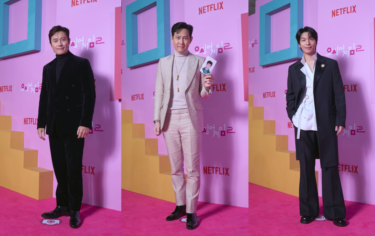'.Acara Squid Game World Premiere Event ini berlangsung sangat megah. Dongdaemun Design Plaza dipenuhi oleh instalasi yang mirip dengan area shooting Squid Game—termasuk boneka Yong Hee ukuran raksasa! Tangga gedung ikonis ini juga berubah menjadi serba pink, tempat sesi red carpet berlangsung. Selain pemain dari season kedua, sesi red carpet malam itu juga dimeriahkan oleh kehadiran pemain dari season pertama yaitu Jung Ho Yeon, Park Hae Soo, Kim Joo Ryung, dan Anupam Triapathi. What a surprise!