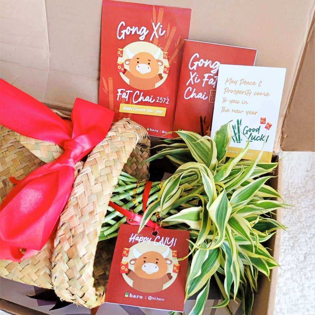 Selain menjual pohon untuk kamu ~adopsi~ sebagai dekorasi meja, toko ini juga memiliki opsi hampers untuk kamu yang ingin mengirimkan hadiah Imlek. Berisikan bambu hoki berukuran besar, dilengkapi dengan pot berselimut purun serta kartu ucapan Imlek (yang isinya bisa kamu custom! Cool, cool, cool). Selain itu, hampers ini juga dilengkapi dengan angpau sebagai lambang rezeki dan keberuntungan.