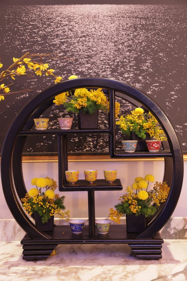 Memasuki ruang ini kita akan merasakan suasana yang memberikan energi keberanian—didukung dengan pemilihan tema dekorasi yang berwarna kuning, serta hiasan-hiasan khas peranakan karya Flora Lines.