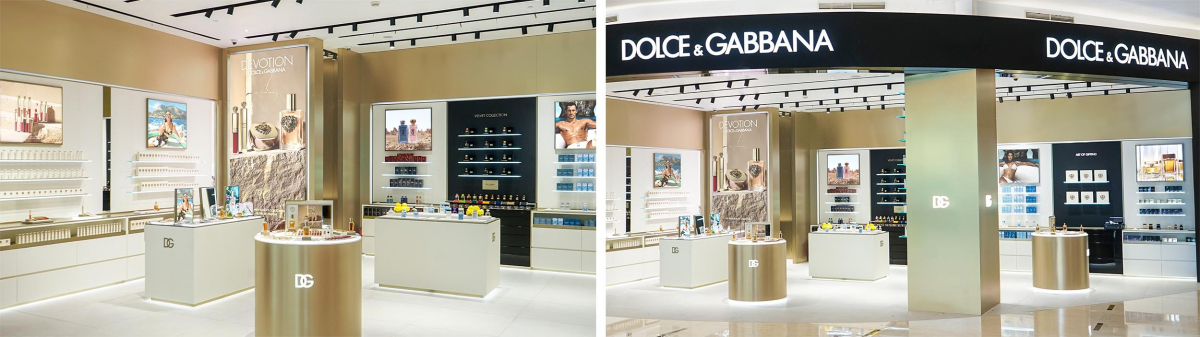 Ketika mengunjungi butik ini kamu akan disuguhkan dengan lampu-lampu yang hangat dan cantik, serta rangkaian produk D&G beauty yang lengkap pada dinding-dinding butik dan tentunya. Di butik ini kamu juga akan menemui Velvet Collection yang menawarkan aroma dan kenangan tak terlupakan tentang Italia melalui aromanya.