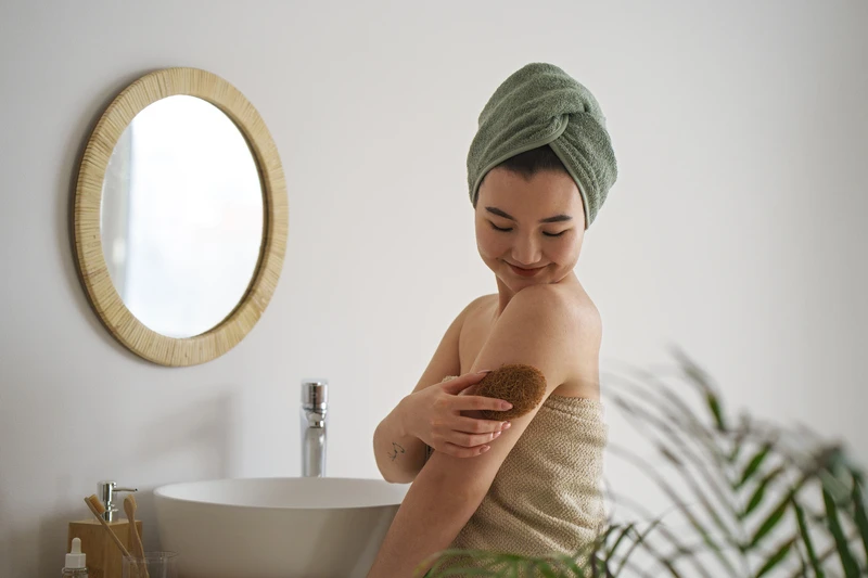 Membersihkan kulit tubuh secara menyeluruh akan menghilangkan kotoran dan keringat, sehingga body scrub dapat melakukan proses eksfoliasi dengan baik pada kulit yang sudah bersih.