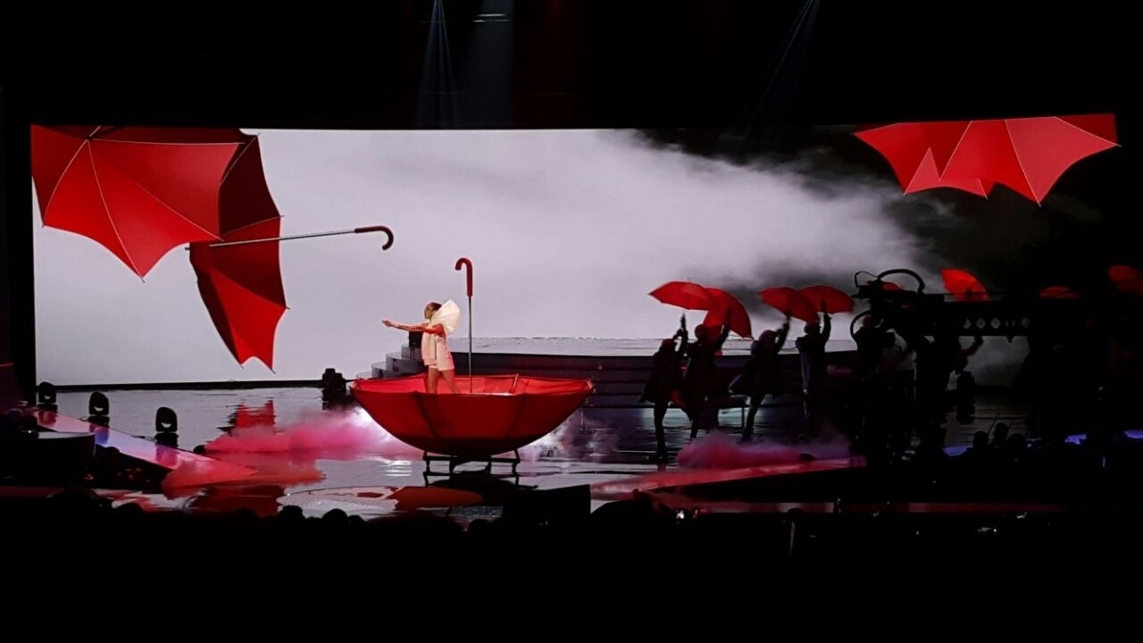 Lagu pertama yang dibawakan adalah Aku Tak Mau Sendiri. Suaranya yang indah dan lembut membuktikkan usaha dan kerja kerasnya selama berbulan-bulan. Panggung yang tadinya kosong mendadak ramai dengan penari dan property unik seperti tangga tinggi, kain-kain terbang, dan payung raksasa. Penampilannya yang artsy ini adalah berkat art director dari Los Angeles, Ashley Evans dan Antony Ginandjar (The Squared Division), yang sudah biasa bekerjasama dengan artis internasional seperti Taylor Swift dan Jessie J.