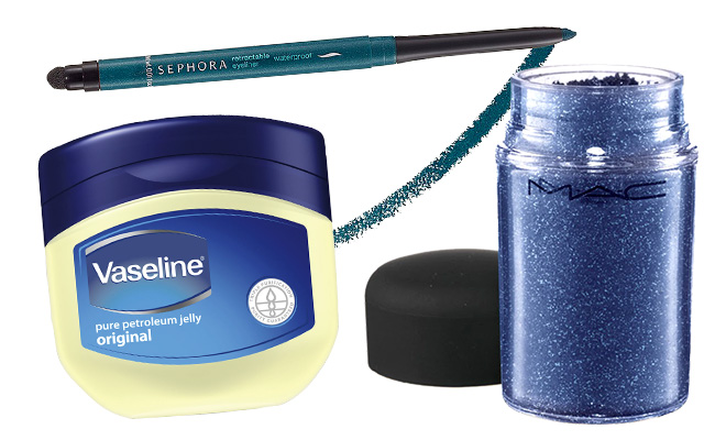 Caranya: Yang dibutuhkan petroleum jelly, pensil eyeliner berwarna biru sebagai lipstik, dan bubuk eyeshdow bertekstur shimmer berwarna biru muda. Aplikasikan petroleum jelly secukupnya terlebih dahulu untuk melindungi kulit bibir agar tidak kering oleh pensil eyeliner, kemudian gambar bentuk bibir menggunakan pensil eyeliner tersebut lalu isi warna bibir. Lanjutkan dengan dab bubuk eyeshadow shimmer secukupnya pada tengah bibir.