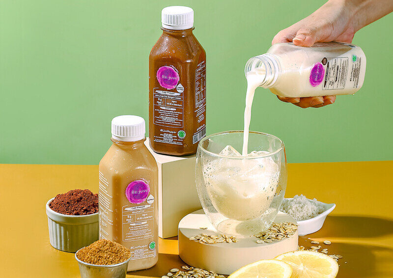 Calling all oatmilk lovers! Selain dikenal dengan cold-pressed juice-nya yang menyehatkan, Re.juve juga ternyata memiliki susu oat yang tidak kalah nikmat untuk kamu coba. Susu oat versi Re.juve dikemas dalam dua ukuran yaitu 250ml dan 1.350 ml, serta terdiri dari tiga varian rasa yaitu Original, Chocolate, dan Unsweetened.