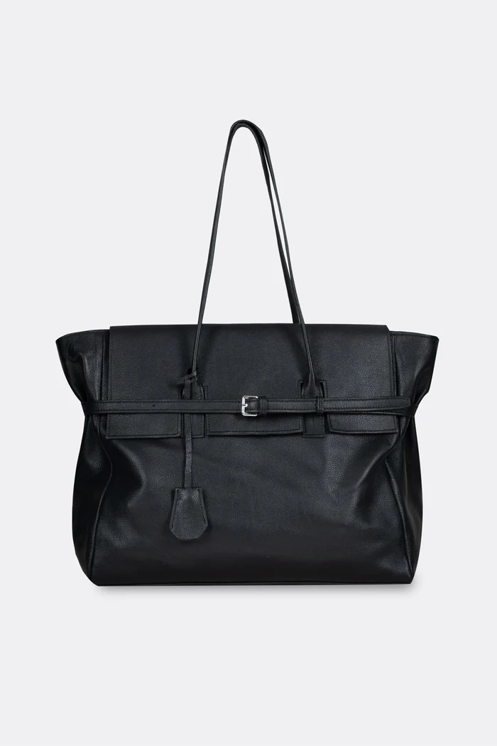 Obi Bag Grain Black dari Aesthetic Pleasure adalah pilihan sempurna bagi mereka yang menginginkan desain minimalis, namun tetap elegan. Dengan material kulit grain yang memberikan kesan mewah, tas ini memiliki kompartemen yang luas untuk menyimpan laptop, dokumen, dan barang esensial lainnya. Tas ini cocok dipadukan dengan blazer oversized berwarna netral seperti beige atau hitam, kemeja putih, dan celana tailored. Sepatu loafers atau heels klasik akan semakin memperkuat kesan profesional, namun tetap effortless.
