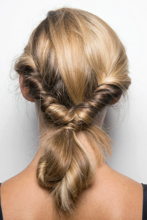Kenakan mousse saat rambut masih ¾ basah, dan keringkan dengan hairdryer dan sisir. Lalu, tarik rambut ke puncak kepala, twist, dan jepit. Pastikan rambut tak terlalu rapi ya!