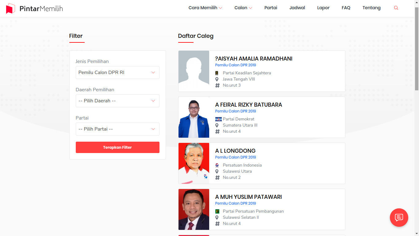 Seperti situs lainnya di atas, kamu juga bisa lihat daftar calon legislatif sesuai daerah pemilihan kamu masing-masing.
