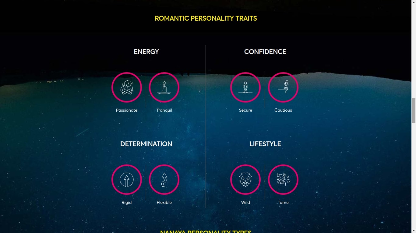 Dikembangkan oleh ilmuwan roket NASA sungguhan, Rashied Amini, versi gratis dari kuis ini memiliki struktur yang sama dengan desain Myers-Briggs, tapi bisa lebih mendalam terhadap pendekatan-pendekatan diri tentang singledom, atau seperti apa jenis hubungan romantis yang cocok dengan kamu, bahkan ada hasil statistik lokasi mana yang diisi oleh banyak orang yang cocok dengan kamu (jika kamu mengikuti kuis personal lanjutan tentang karier dan tujuan hidup). Kalau kamu benar-benar siap mengetahui kenyataan, kuis ini juga bisa menyebutkan apakah kamu harus putus dengan si dia atau tidak.