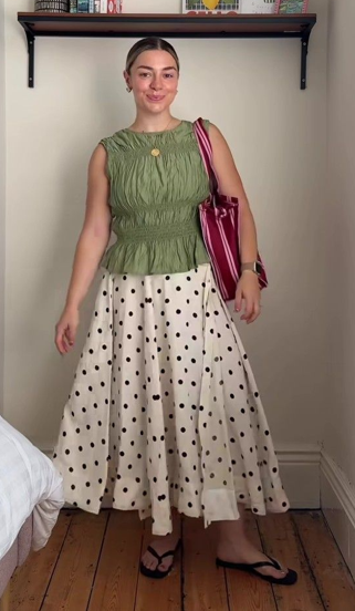 Untuk jenis atasan, salah satu yang paling cocok untuk figur apel adalah model milkmaid.