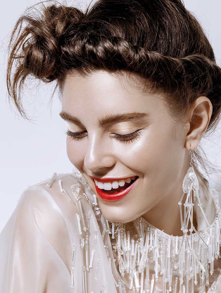 Tampil sedikit berbeda dengan kelopak glossy, why not? Pastikan Anda mengenakan gel atau cream eyeshadow warna kulit sebelum menumpuknya dengan eye gloss. Pulas maskara setelahnya dan tambahkan lipstik creamy merah cabai agar keseluruhan look tetap seru.
