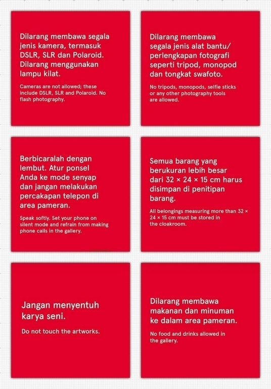 Have fun, but remember to respect the art and other people! Untuk pembelian tiket, klik di sini.