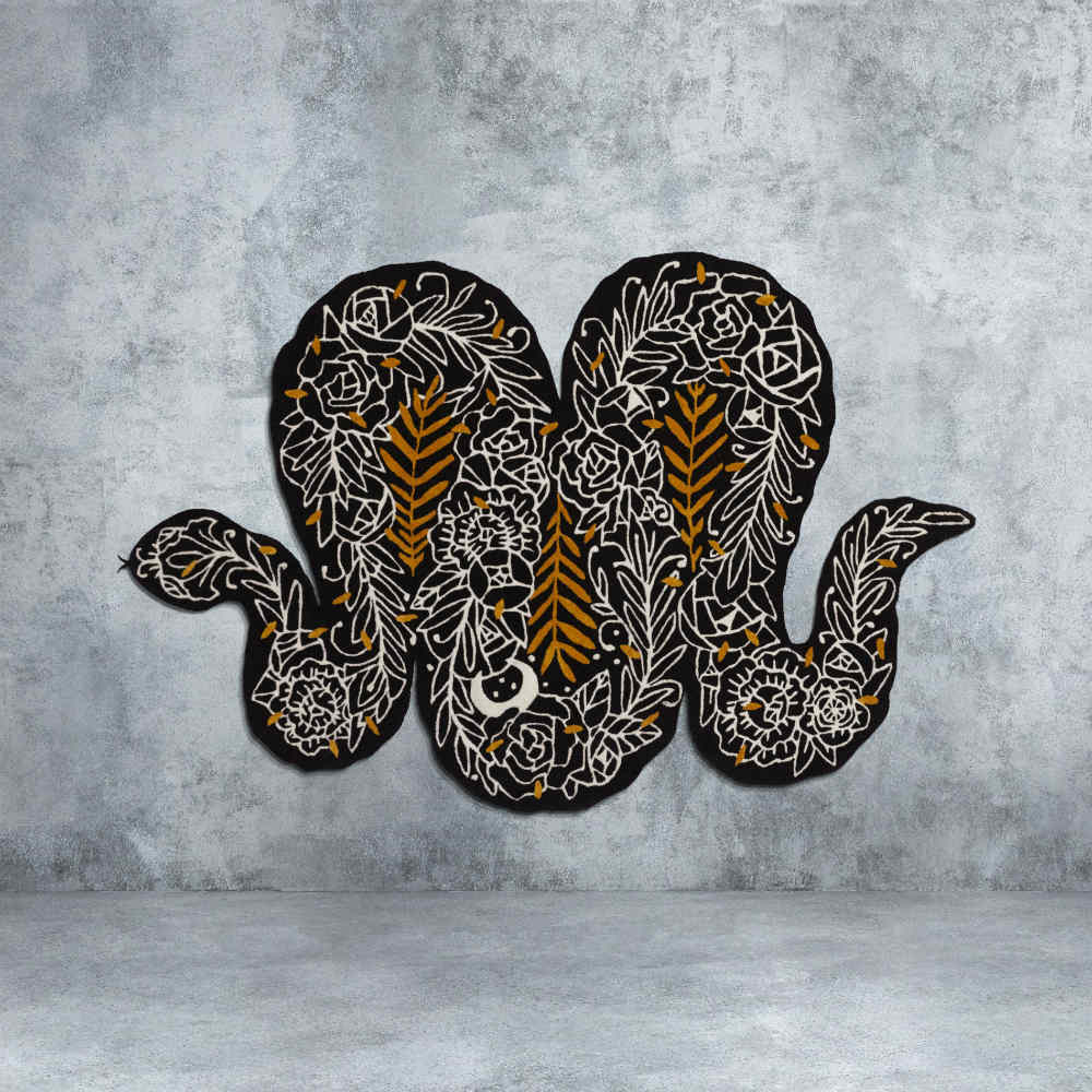Supakitch, seniman asal Perancis ini menghadirkan pendekatan eksentrik yang diaplikasikan pada ritme Art Deco. Seperti pada karya art rug miliknya yang memainkan konsep klasik jenis binatang yang kerap dianggap keramat – ular – sebagai simbol dari panduan spiritual dalam meraih kesembuhan jiwa.