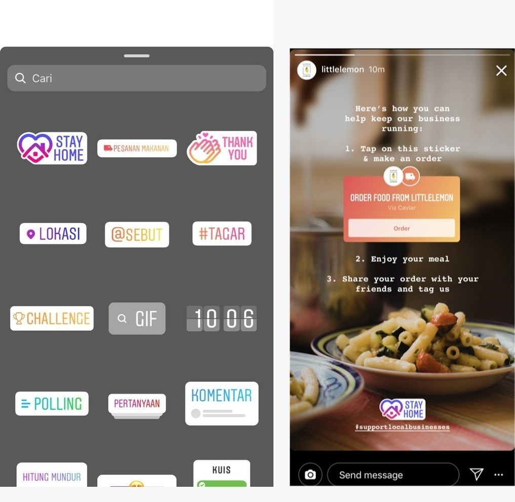 Instagram meluncurkan fitur untuk memudahkan bisnis kuliner mengajak pelanggan mereka untuk melakukan pemesanan. Jika kamu menggunakan akun bisnis Instagram, kamu akan melihat opsi stiker “Pesanan Makanan” di Stories untuk memasukkan tautan bisnis kamu di aplikasi mitra pengantar makanan. Dengan menggunakan stiker ini untuk mempromosikan makanan atau minuman yang kamu jual, followers kamu bisa mengetuk tulisan ‘Pesan’ untuk langsung melakukan pemesanan di aplikasi layanan pesan antar. Saat ini, kamu hanya bisa memasukkan tautan bisnis di layanan GrabFood, namun mitra akan ditambah secara berkala untuk menyediakan lebih banyak pilihan bagi pebisnis. How awesome is that?