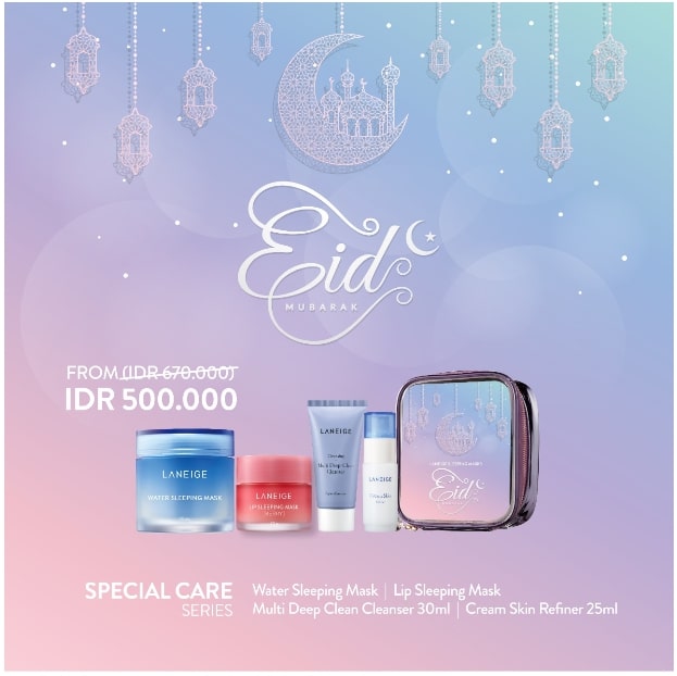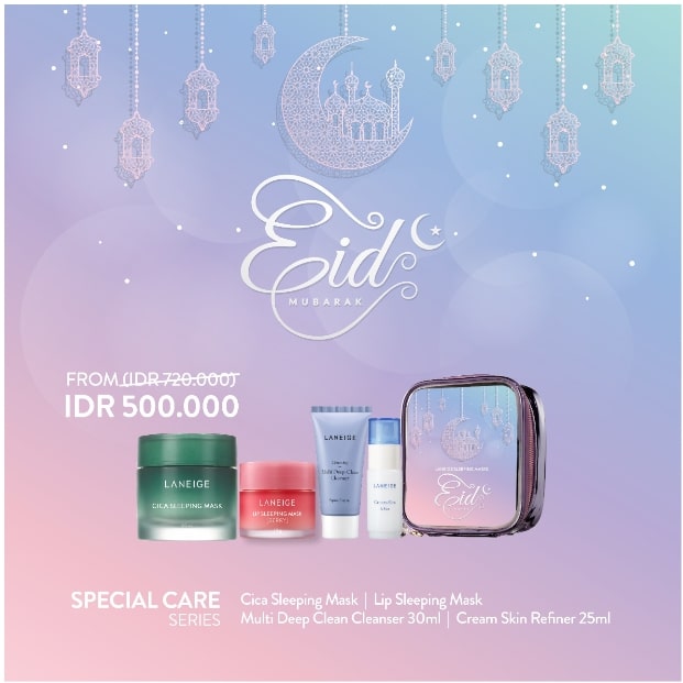 Paket ini menyediakan Laneige Sleeping Mask dan Lip Sleeping Mask yang telah menjadi go-to product banyak pegiat kecantikan di saat kulit butuh kelembapan ekstra, dan Cosmo rasa itu adalah alasan yang cukup meyakinkan untuk memilih bundle ini. Plus, paket spesial Ramadan ini juga dilengkapi dengan pouch imut yang bisa kamu gunakan saat travelling!