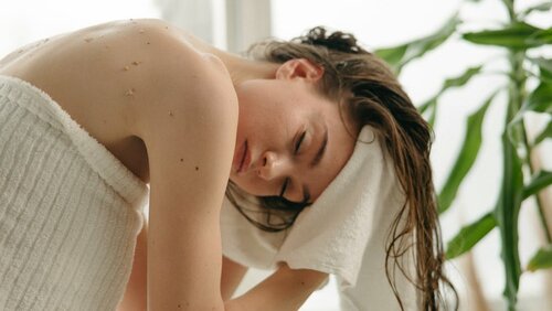 2. Mengeringkan rambut dengan handuk berbahan katun