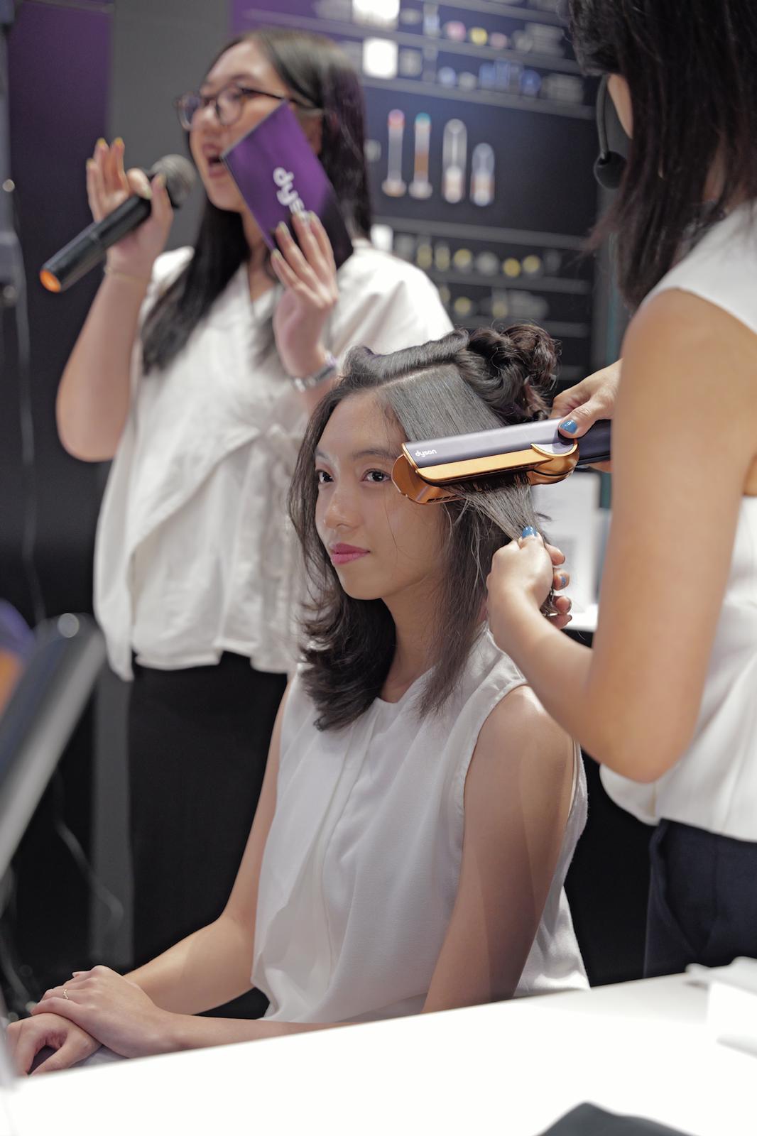Saat mencoba langsung Dyson Airstrait™ straightener, Cosmo diperkenalkan berbagai mode yang ada yaitu mode ‘Wet’, ‘Dry’ yang lebih cocok untuk styling, serta ‘Cool’ untuk setting gaya rambut.