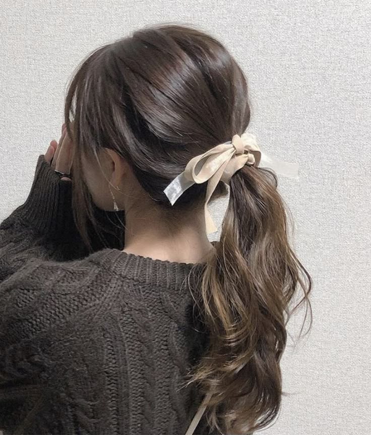 Ini dia upgrade dari kuncir kuda biasa kamu! Dengan tambahan pita, gaya simple ini langsung berubah jadi look yang girly dan playful ala karakter utama drama Korea.
