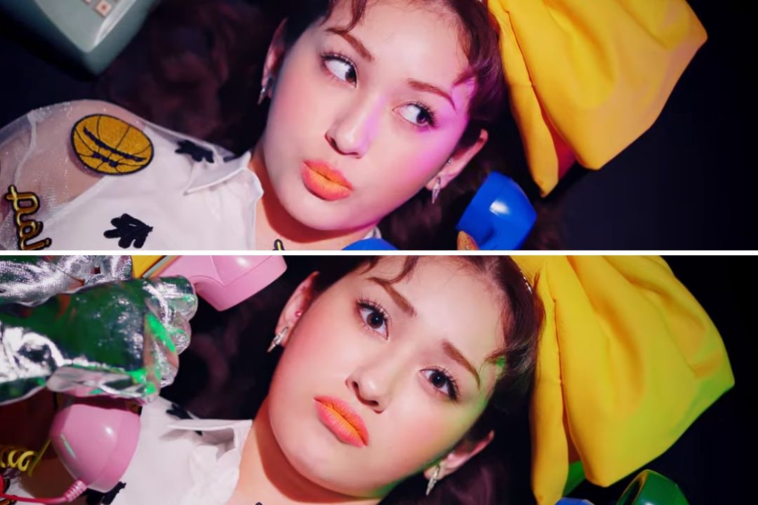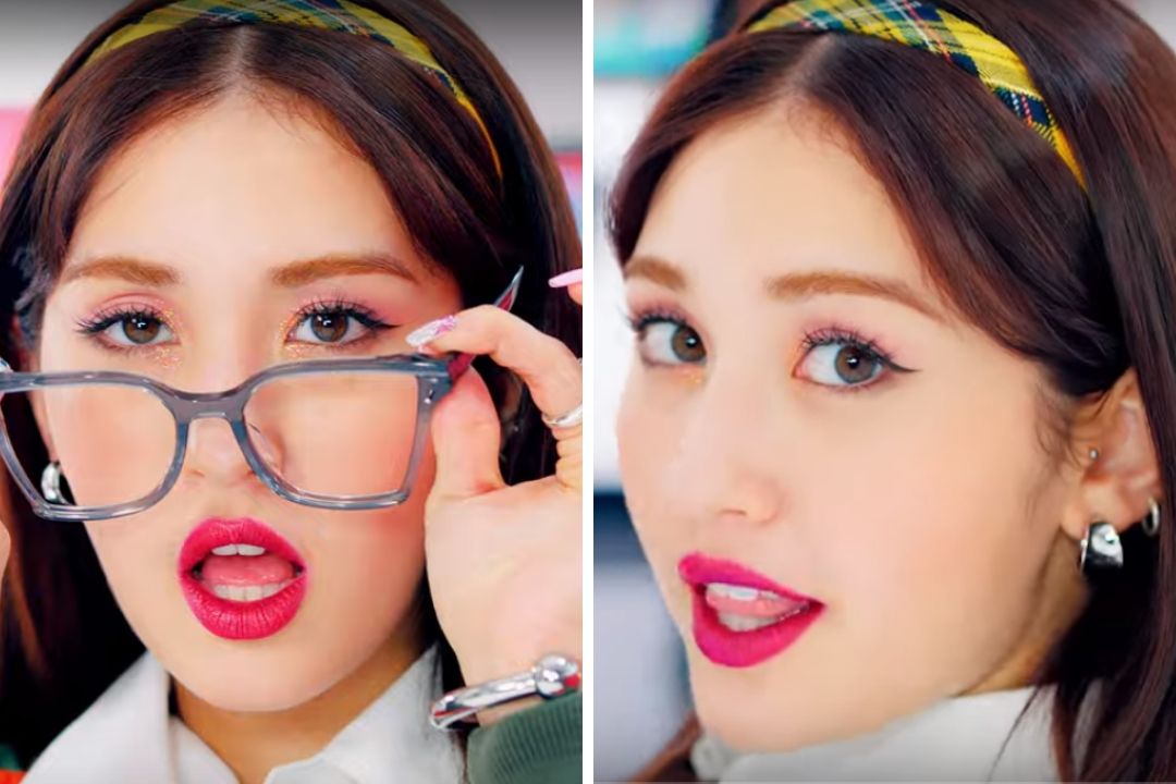 Eits, siapa bilang paduan eyeshadow warna-warni dengan lipstik bercorak terang akan membuatmu terlihat menor? Di video klip "Birthday", Somi sempat menggunakan eyeshadow berwarna pink dan orange muda yang halus serta lipstik fuchsia yang mencolok—dan hasilnya tidak terlihat berlebihan, kok! Mungkin ini bisa menjadi trik padu padan makeup mata dan bibir yang patut ditiru: gunakan eyeshadow berwarna lembut untuk mengimbangi warna bibirmu yang terang. Catat!