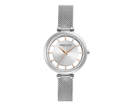 Pada musim ini, KCNY mempersembahkan sebuah koleksi jam tangan wanita automatic, mengikuti jejak kesuksesan model jam tangan pria ‘Skeleton’. Desainnya berfokus pada penampang jam yang transparan, membuat jam tangan ini terlihat feminin sekaligus berkelas. Koleksi jam tangan KC50796003, merupakan bagian dari rangkaian jam tangan transparan yang cocok dipakai sehari-hari. Dengan desain yang sederhana, jam tangan silver ini memiliki diameter 34 mm dan juga memiliki penampang yang kontemporer, dilengkapi dengan bagian tengah penampang yang memiliki ‘sunray color’ (seperti pantulan cahaya matahari) dan index serta jarum jam dalam warna rose gold yang cantik. Rantai jam tangan yang sangat ramping, terbuat dari stainless steel, memberikan tambahan tekstur dan kesan elegan. Tersedia dalam 4 pilihan warna yang cantik, termasuk ungu dan hijau bagi kamu yang menyukai warna bold.