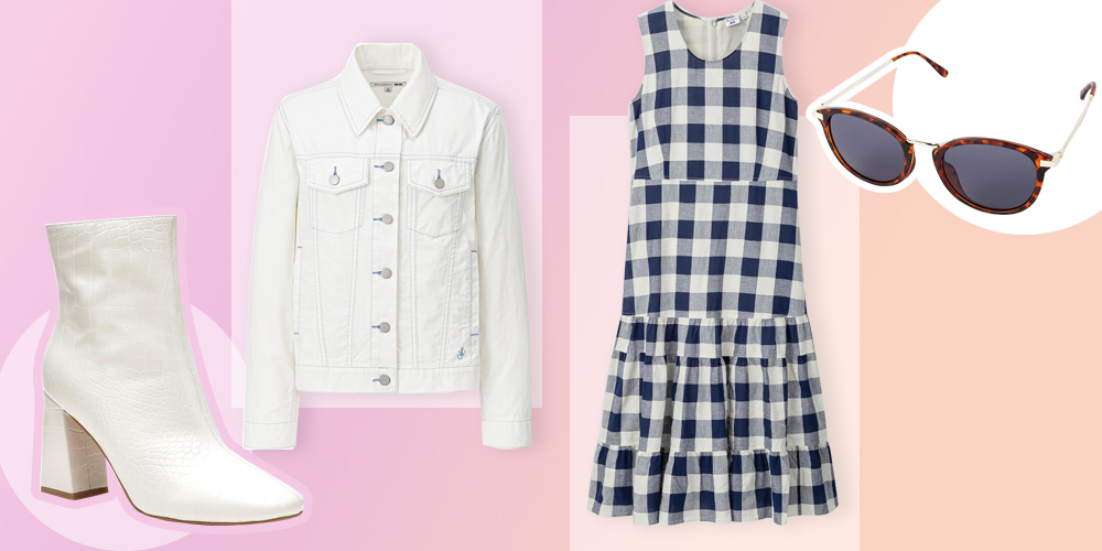 Siapa bilang kamu tak bisa tampil trendi dan elegan dengan flowy dress? Tengok padu padan ini. Pilih picnic dress dengan siluet flowy bermotif gingham check ini, lalu padankan dengan jaket denim berwarna putih yang akan mengelevasi keseluruhan tampilanmu. Sebagai sentuhan akhir, kenakan ankle boots berwarna putih dan sunglasses. Voila!