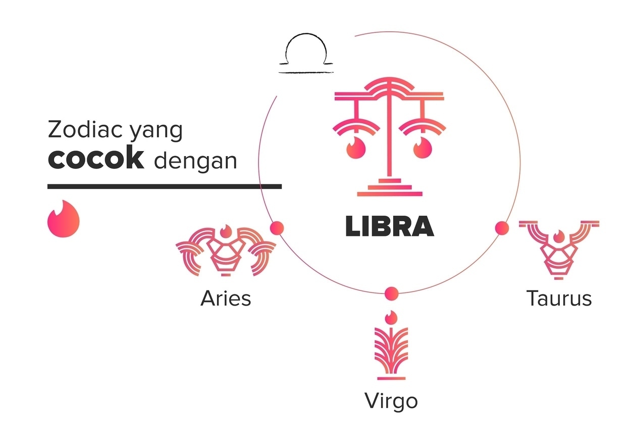 Zodiak yang cocok untuk Libra: Aries, Virgo, dan Taurus.