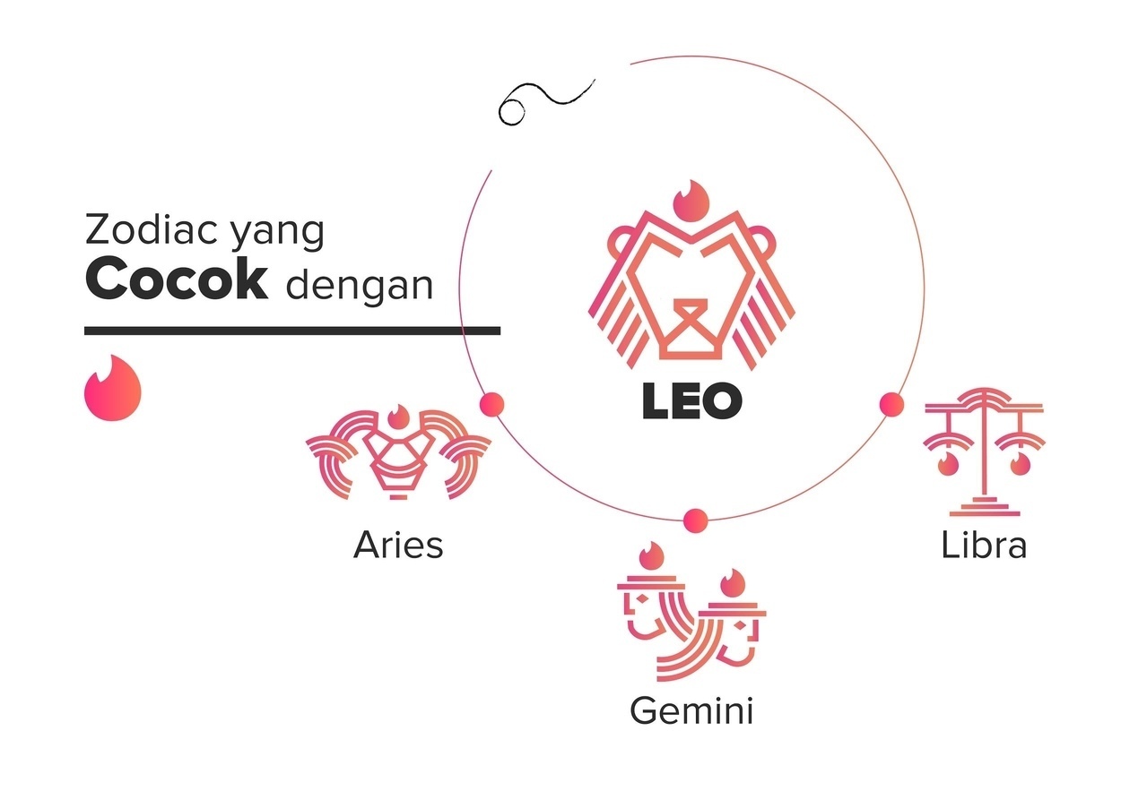 Zodiak yang cocok dengan Leo: Aries, Gemini, dan Libra.