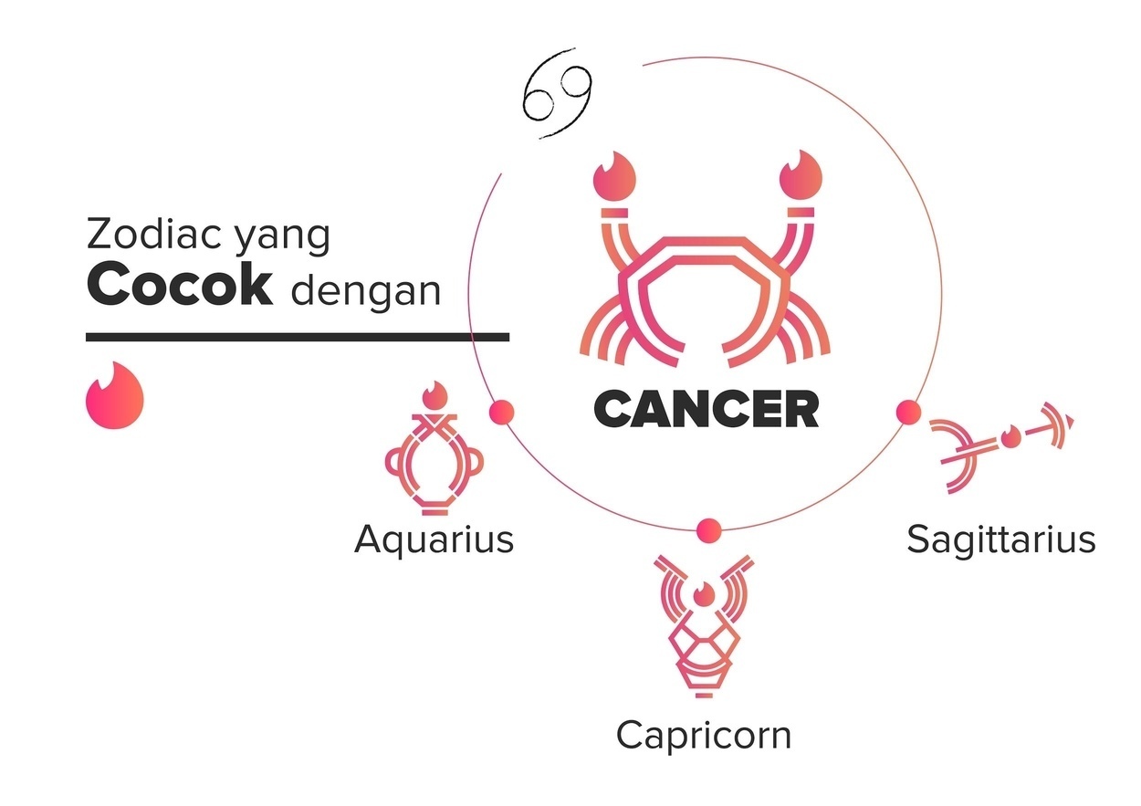 Zodiak yang cocok dengan Cancer: Aquarius, Capricorn dan Sagitarius.