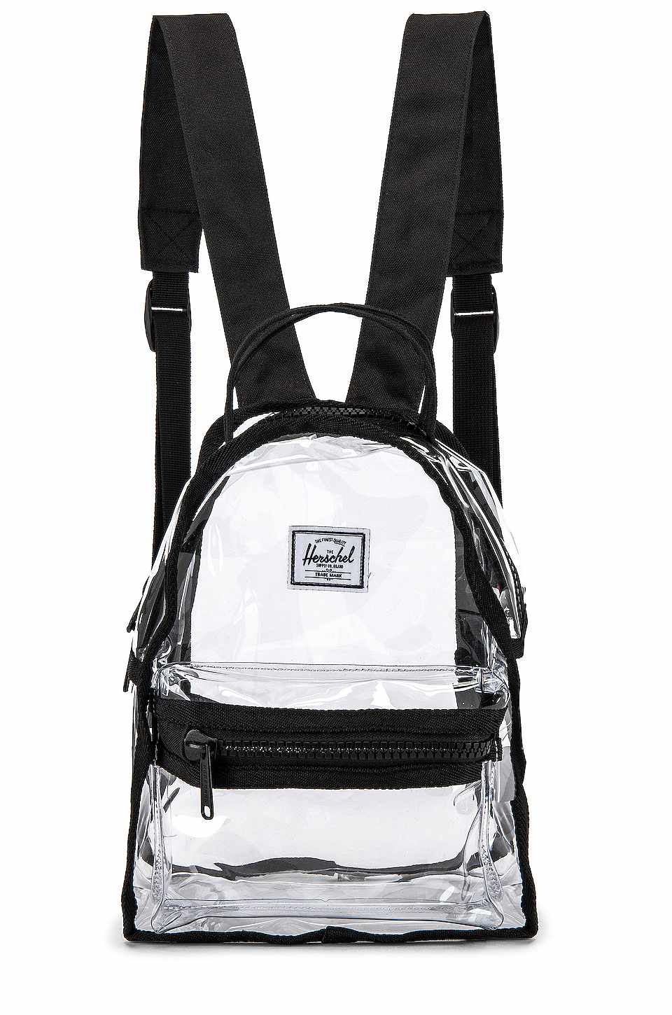 Tampil simpel namun eksentrik dengan mengenakan mini backpack bermaterial vinyl tembus pandang berikut ini. So unique!