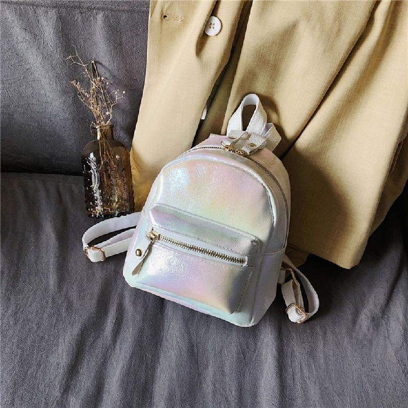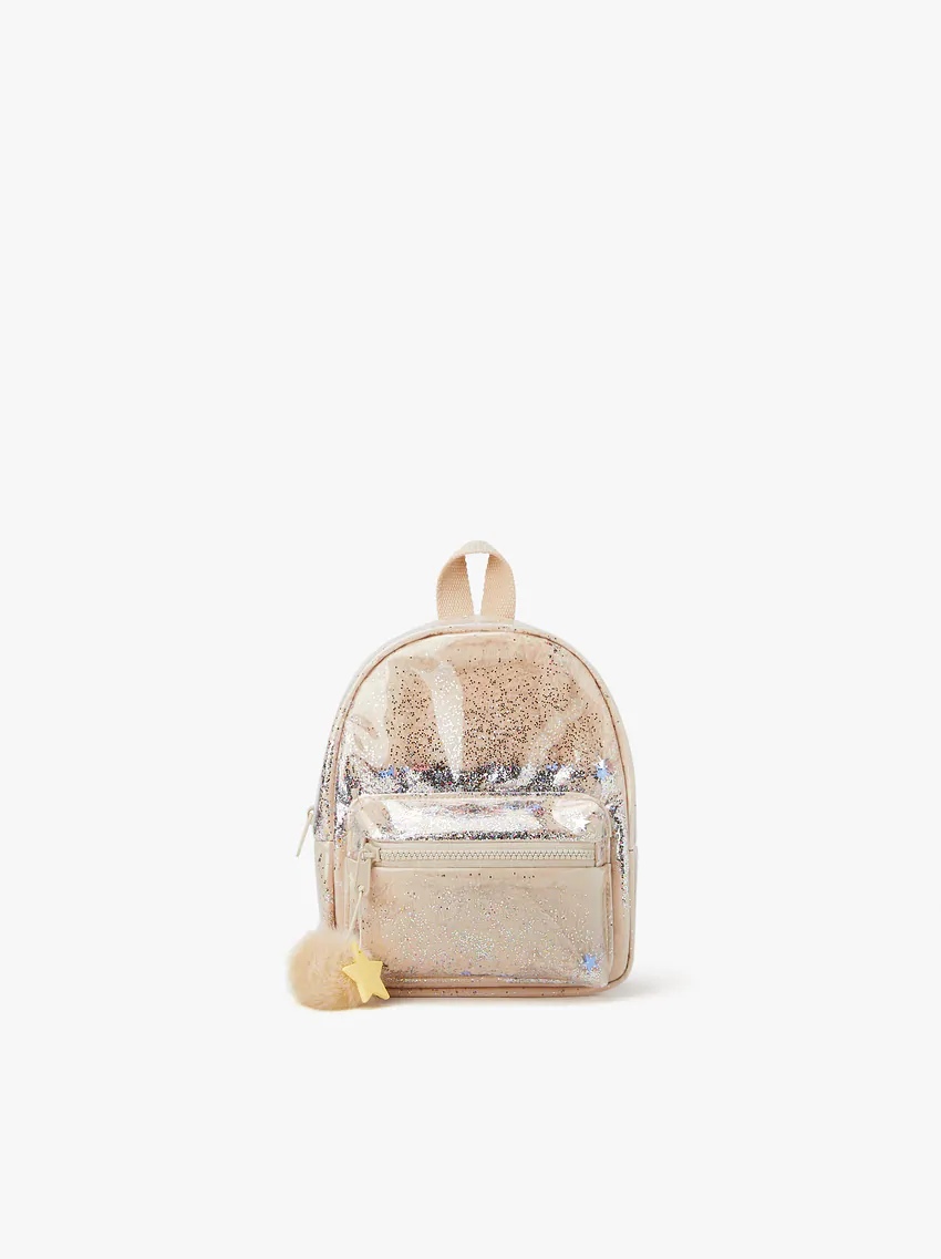 Jika kamu ingin tampil girly, coba kenakan mini bakcpack dengan material vinyl unik berikut ini. Polesan glitter penuh rona dan aksen gantungan pompom akan membuat gaya kamu jadi tak biasa!