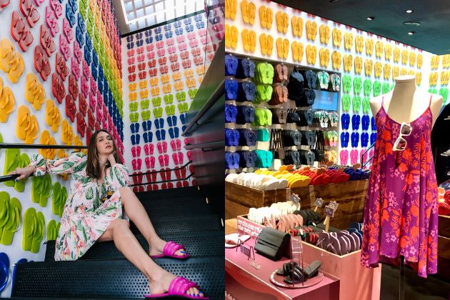 Flagship store ini memiliki konsep mezzanine. Ada jembatan merah setapak dan berkelok yang akan membawa Anda turun ke area belanja. Sambil mengeksplorasi setiap sudut ruangan dan koleksinya, Cosmo berbincang dengan Thais Farage—seorang fashion stylist ternama di Brasil—dan dari situlah saya mengetahui bahwa ‘mengenakan sandal’ sudah menjadi budaya negara mereka. Bukan hanya menjadi suvenir pernikahan saja, sandal juga dikenakan untuk ke acara formal, termasuk ke kantor! Tentu selain menyesuaikan pakaian agar terlihat lebih rapi, Anda harus memilih desain sandal yang lebih stylish. Mix and match blazer dengan slip on sandal? Why not!
