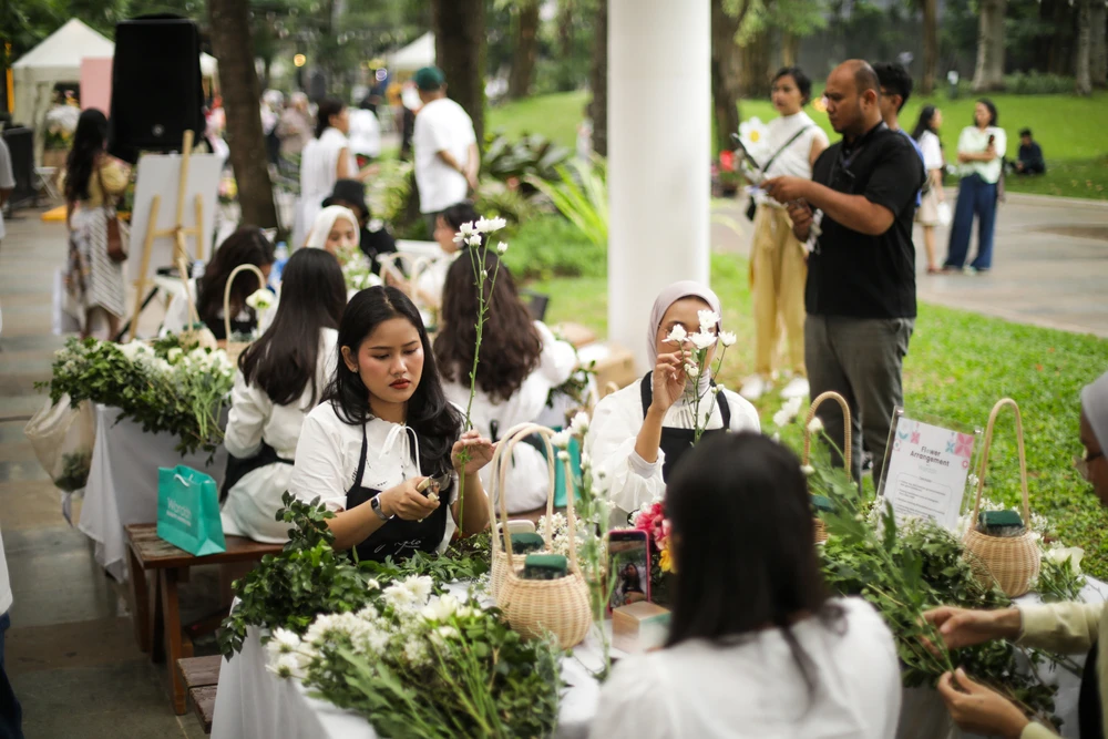Dipandu langsung oleh florist dari JakFlo, para peserta diajak menyusun bunga-bunga segar sambil belajar dasar-dasar komposisi bentuk yang harmonis. Menariknya, setiap rangkaian yang dibuat bukan sekadar dekorasi cantik—tapi juga menjadi cerminan dari kepribadian dan mood masing-masing.
