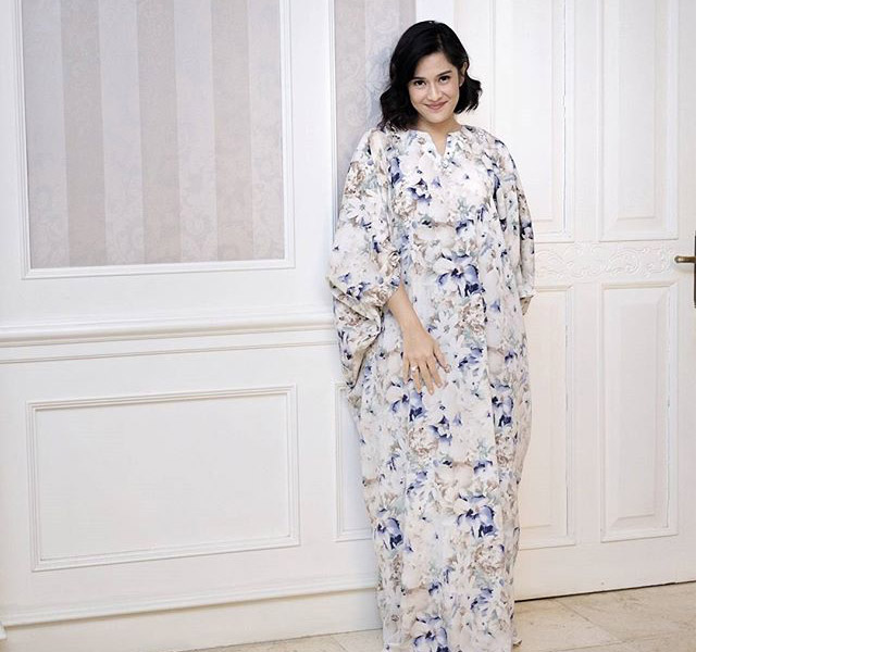 Tentunya Cosmo tak ingin ketinggalan membahas pakaian dari Dian Sastrowardoyo. Lihat, deh, pattern bunga berpalet biru yang memenuhi kaftan berwarna putih miliknya! Terlihat sangat fresh dan berbeda dengan palet pastel yang biasanya dipilih kebanyakan wanita saat Hari Raya.