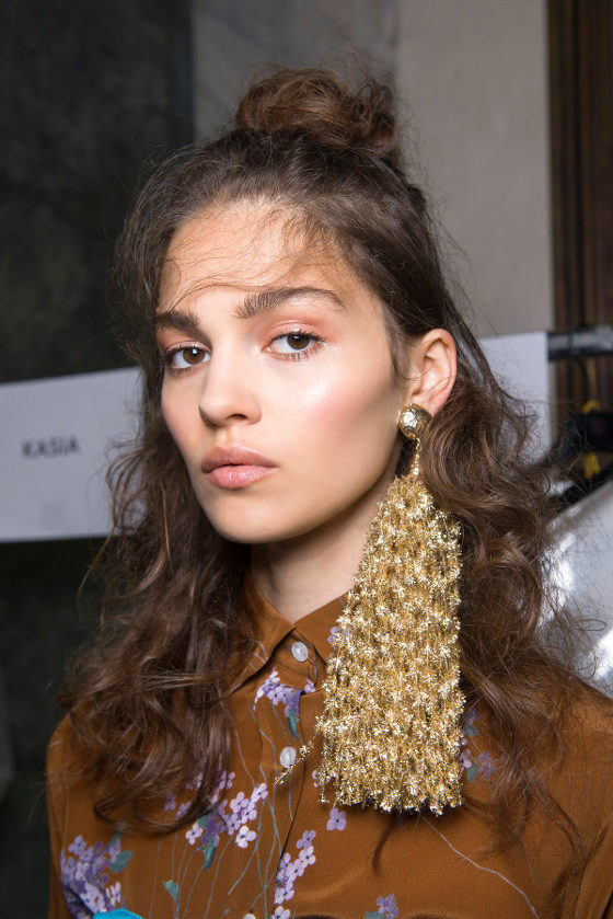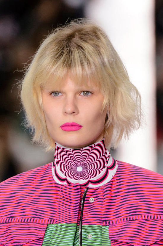 The mother of dragons yang baru saja sampai di Dragonstone ini terkenal dengan rambut pirang platinumnya yang selalu dihiasi dengan jalinan kepang. Try it the Cosmo Way: Tiru para model di runway Andrew GN dengan memisahkan rambut jadi 5 bagian. Kepang cornow dua tumpuk di bagian atas telinga kiri dan kanan. Kenakan mousse di sisi rambut pada bagian depan dan puncak kepala, dan sasak. Sisir ke belakang menggunakan jemari untuk efek messy yang modern, dan jepit. Ikat bagian belakang atau biarkan terurai.
