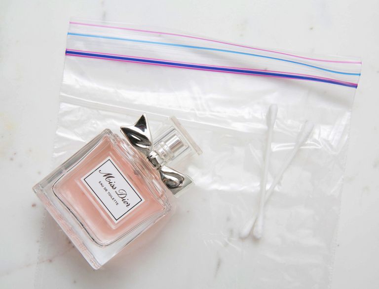 Semprotkan parfum pada cotton bud, kemudian letakkan di dalam kantong plastik dan masukan ke dalam tas kamu untuk persiapan touch up yang cepat. Ini jauh lebih mudah hanya dengan cotton bud daripada harus kamu menyemprotkan kembali dan membawa sebotol parfum.