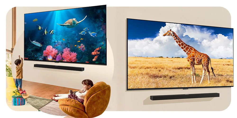 Dengan prosesor pintar AI terbaru, TV ini memiliki peningkatan performa AI 1,5 kali lipat, peningkatan grafis 4,5 kali lipat, dan kecepatan pemrosesan 2,2 kali lipat. Ini berarti visual dan audio yang lebih mengagumkan dengan opsi personalisasi yang lebih tinggi.
