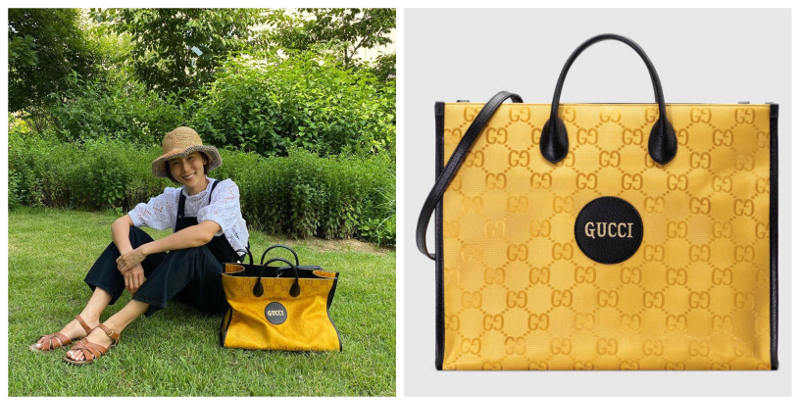 Perempuan ini memang selalu terdepan dalam urusan gaya. Coba tengok aksi santainya dengan tas dari Gucci bermodel tote bag yang ia bawa saat bersantai di taman. Tas ini terlihat begitu pas berpadu dengan blus putih, overall, dan sandal tali. Gaya tersebut bisa kamu contek untuk akhir pekan nanti.