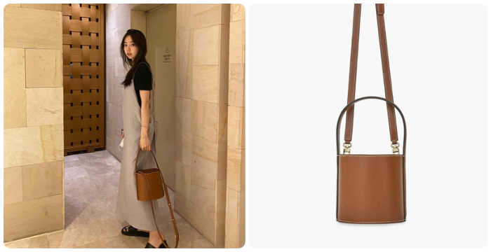Mantan personel Wonder Girls ini memilih tas bermodel bucket untuk menemani gaya santainya. Cosmo jatuh cinta dengan Mini Bissett Bag lansiran label Staud yang memiliki garis rancang minimalis dengan warna netral yaitu rona cokelat. Tas berbentuk unik berikut bisa kamu selempang kala berpenampilan santai dan kamu jinjing dengan melepas tali panjangnya ketika beraksi semi formal.