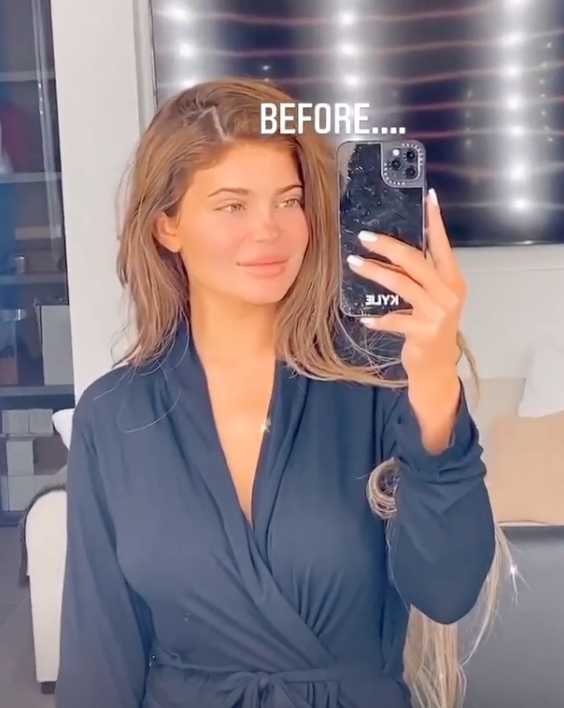 Di unggahan Instagram Story, Kylie mengajak para penggemarnya untuk melihat proses glamor yang dilaluinya, serta memberi detail secara langkah demi langkah untuk mengaplikasikan makeup menggunakan Kylie Cosmetics. Alaminya, Kylie berbagi seperti apa penampilannya sebelum mengenakan makeup, dan memberi para penggemar sebuah foto wajahnya yang bebas makeup.
