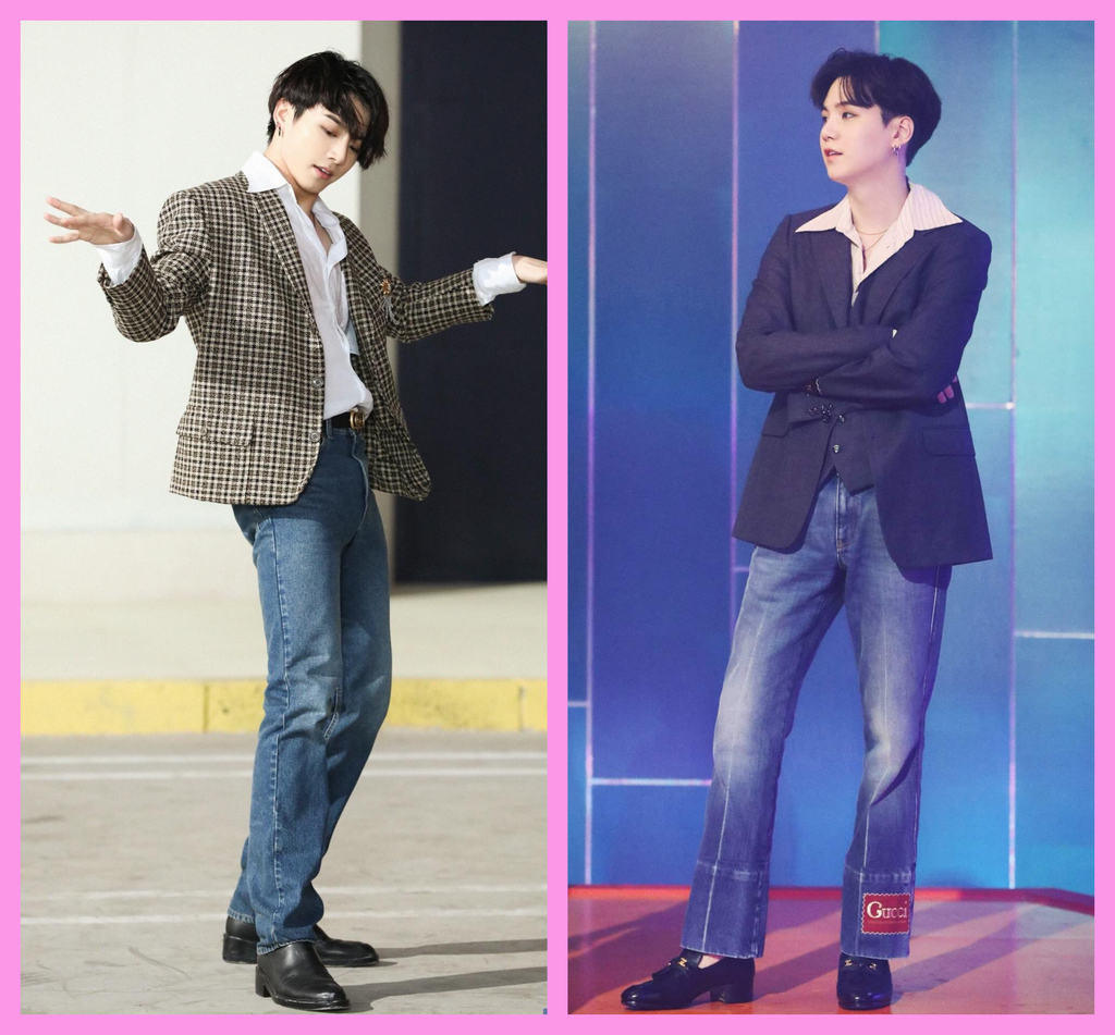 Tidak hanya tampilan retro, BTS juga membawa vibes casual kids yang terlihat refreshing di MV Dynamite. Look kasual ini begitu menonjolkan aura BTS yang cheerful, young, dan dinamis. Kamu juga bisa lho meniru tampilan kasual ala BTS di MV Dynamite ini dengan mengadaptasi style denim on denim milik Jungkook BTS. Atau menggunakan white t-shirt + kemeja berwarna soft seperti yang dilakukan sang leader, RM. Contek juga style brilliant dari Suga BTS yang menggunakan atasan dan bawahan bermotif senada untuk keseharian kamu. So glow up!