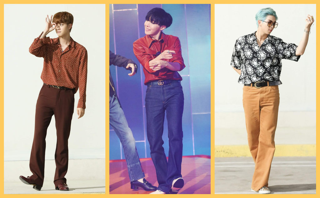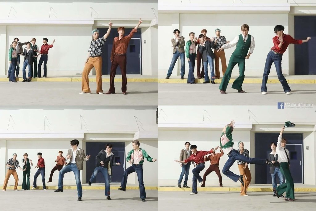 Setiap video klip BTS, rasanya mereka selalu menghadirkan sesuatu yang baru dan challenging dalam urusan fashion-nya. Di MV Dynamite misalnya BTS menjelma menjadi pria-pria bergaya 70's yang hippies dan funky. Penggunaan warna-warna bold seperti: biru, merah, cokelat, kuning, dan hijau pun dipilih untuk memperkuat vibes retro di MV Dynamite. Belum lagi padanan flare jeans yang digunakan personil BTS di MV ini juga semakin menyempurnakan kesan 70's yang ingin ditonjolkan dalam MV Dynamite.