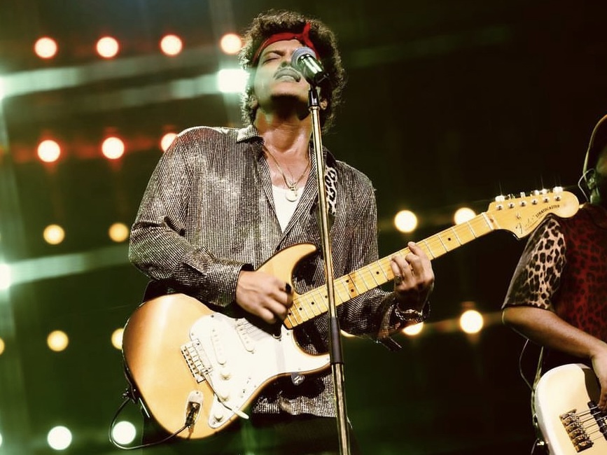 Bruno Mars dikenal dengan gaya panggungnya yang mencolok dan kostum retro yang mengingatkan pada era 70-an dan 80-an. Gaya fashion-nya sering kali mengadopsi elemen dariera tersebut, termasuk jas berpotongan vintage, kacamata hitam besar, dan sepatu berkilau. Hal ini tidak hanya mencerminkan kecintaannya pada musik era itu, tetapi juga menjadi ciri khasvisual yang membedakannya dari artis lain.