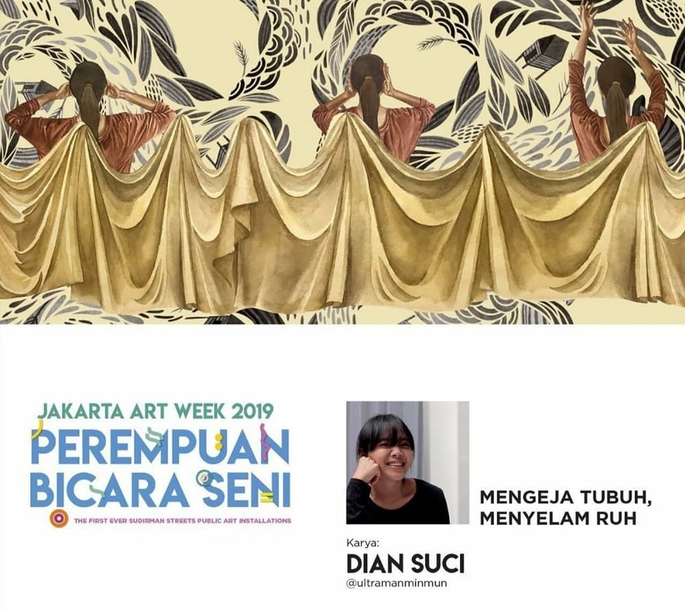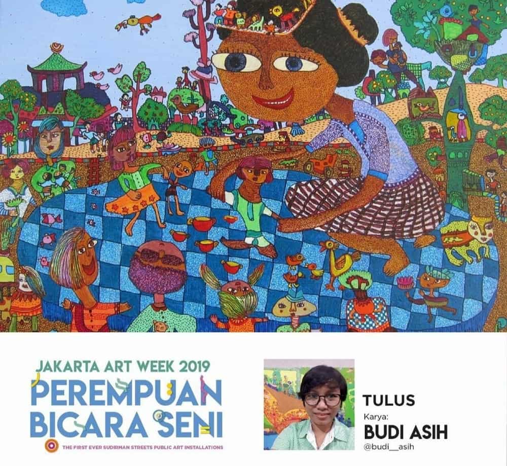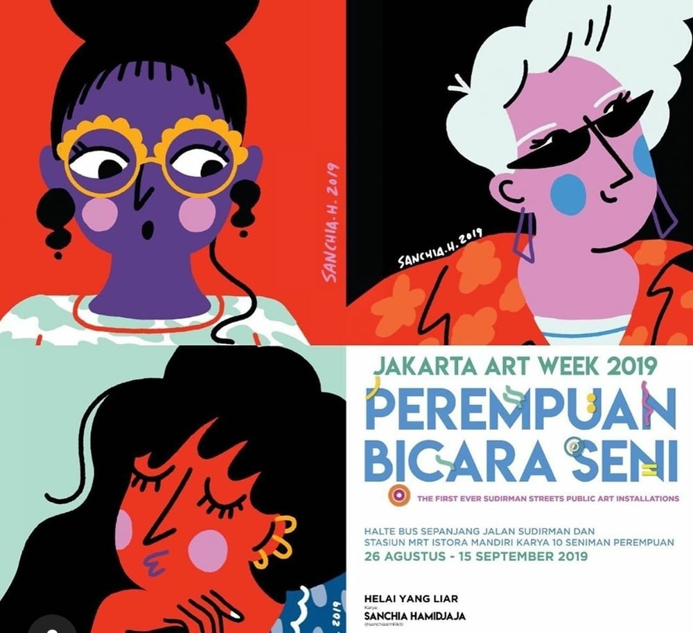 Akhir bulan Agustus kemarin, Jakarta Art Week 2019 resmi digelar untuk umum oleh Gubernur DKI Jakarta, Anies Baswedan. Acara ini sendiri merupakan pekan perayaan seni rupa di kota Jakarta yang diinisiasi oleh MRA Media, dan didukung oleh Pemprov DKI Jakarta, Enjoy Jakarta, MRT Jakarta, Trans Jakarta serta Dove Indonesia. Diadakan pada 26 Agustus sampai 15 September 2019 nanti, Jakarta Art Week 2019 mengajak masyarakat Jakarta - khususnya para pejalan kaki - untuk bisa menikmati karya seni di sepanjang jalan Sudirman. Di tahun pertama penyelenggaraannya ini, pagelaran ini menampilkan 10 karya seniman perempuan di 21 titik halte sepanjang jalan Sudirman dengan tema Perempuan Bicara Seni.