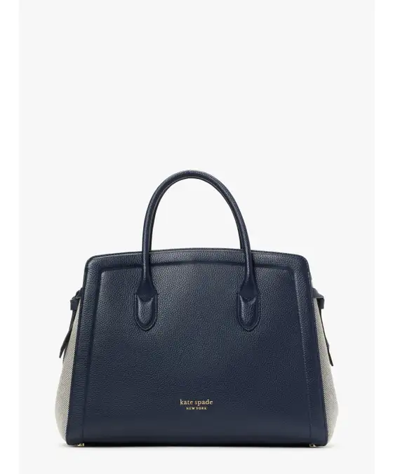 Sling bag tak selalu berukuran mini. Kamu yang sedang mencari tas berukuran besar dan cocok untuk dipakai ke kantor maka seri Knott dari Kate Spade New York bisa jadi pertimbangan. Perpaduan material leather dan canvas memberi nuansa chic pada tas bersiluet tegas ini. Di situs resmi Kate Spade New York tas ini dijual seharga Rp8.390.000